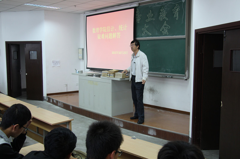 信计和统计专业的专业定位、专业目标以及专业要求做了详细的描述。接下来针对15级新生入学以来的两个月,在学习和生活上遇到的困难进行有针对性的解答,讲述了自己的从小学、初中再到高中、大学的求学的亲身经历,并把自己大学期间用过的课本拿来给学生展示和观看,以自己的亲身经历告诉15级新生求学过程的努力和艰辛,告诫大家要有一个远大的目标,需要自己持之以恒、坚持不懈的朝着自己的目标去奋斗。