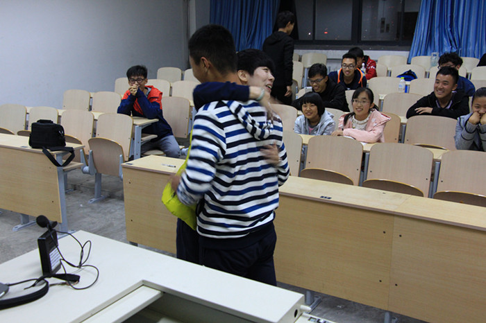 师生的热烈响应。“很多同学走上讲台与我拥抱,那一刻我感觉他们不是学生,而是家人、朋友。”物理系的田紫雅老师说。“用这种萌嗒嗒的方式鼓励学生,比心灵鸡汤强多了。”一位同学说。