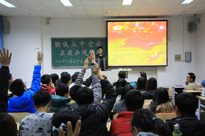 学生会组织了形式多样的知识竞赛活动,宣传全会精神。竞赛活动采取现场竞答、问卷回答等形式,题目围绕即将完成的“十二五”规划和已经出台的“十三五”规划建议展开。知识竞赛活动得到了同学们的广泛关注与支持,使同学们进一步加深了对党的新动向、新政策的理解和掌握。