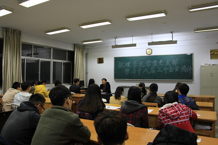 在经管楼313会议室举行十八届五中全会精神学习报告会。邀请天博体育