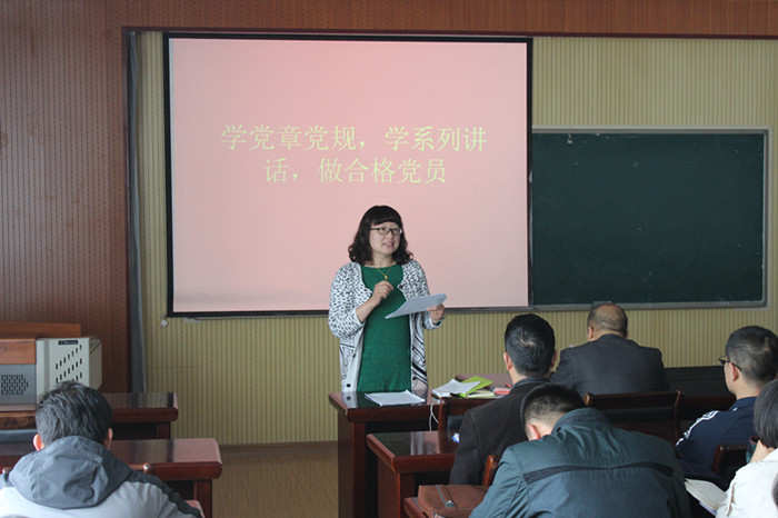 物理系党支部书记吕浩做了题为“认真践行‘两学一做’,争做数理‘育人标兵’”的党课演讲,从三个方面解读了“两学一做”的内涵。第一,学党章党规,树立党章意识,保持党的纯洁性。第二,学系列讲话,坚定理想信念,保持党的先进性。第三,做合格党员,做党和人民满意的教师。要坚持以知促行,做讲政治、有信念,讲规矩、有纪律,讲道德、有品行,讲奉献、有作为的合格党员。要做到“平常时候看得出来,关键时刻冲得上去”。