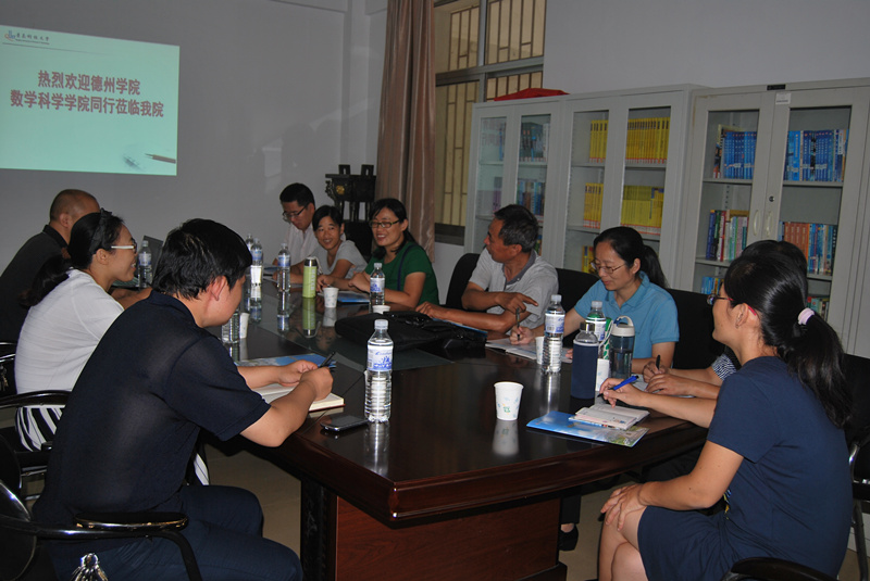 2016年9月14日上午,德州天博体育 数学科学天博体育 副院长张玉坤一行到天博体育 进行考察交流,双方就学科建设和学科竞赛组织工作进行了座谈。副院长杨树国出席座谈会并讲话,数学建模教研室和应用数学教研室负责人参加座谈会。