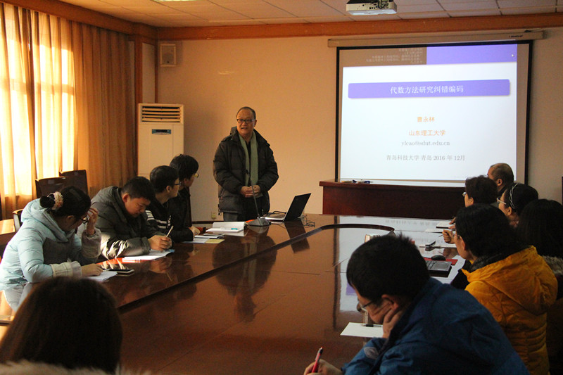 曹永林在报告中概述了环、模和群代数的理论和方法在研究纠错编码问题中的应用情况,介绍了代数编码的一些研究课题。曹永林用生动幽默的语言介绍了编码理论的基础知识,阐释了编码的基本思想。报告内容丰富,观点新颖,对科研工作的热情、执着、严谨,感染了在座师生。