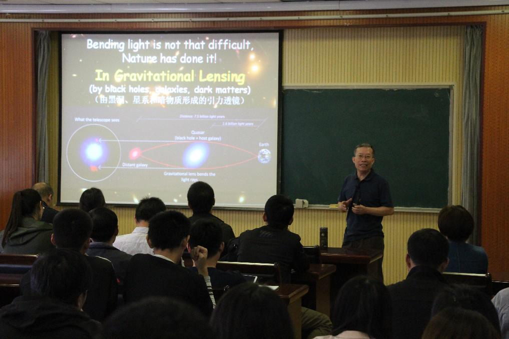 谭教授以生动形象的科幻电影《Harry Potter》开题,引入报告主题——人工电磁材料,即“超材料”。深入浅出地介绍了“什么是超材料””“超材料的简略发展概况”“超材料研究的依据和方法”和“超材料研究的难题和局限性”,从科学的角度分析了在科幻电影中出现的各类隐身技术,并指出人工超材料通过弯曲光线可以实现真正的隐身。报告中,谭教授还详细向大家讲解了“负折射”、“负折射的实现”和“光子晶体”的基本概念,并对同学们的疑惑进行了耐心解答。此次报告使大家对超材料以及其在实现“隐身”时的原理有了更深入的了解,更深切地体会到了科学的魅力。