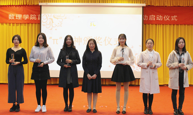 对遴选出的6位优秀女大学生进行了表彰,颁发“π”女神奖杯。女大学生表演了手语操《追光者》。