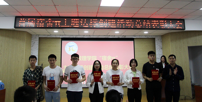 会上,王丽简述了首届“宿舍π”主题创建达标活动的发起背景及开展情况,并宣布表彰决定,与会老师为荣获优秀宿舍称号的20个宿舍代表颁奖。考研宿舍南区三号楼B605、实践宿舍南区十号楼419、竞赛宿舍南区三号楼B610、学霸宿舍南区三号楼A501、卫生模范宿舍南区十号楼309作为优秀宿舍代表上台展示并交流经验。葛夫国最后宣读进一步实施“宿舍π”主题创建达标活动的实施意见,会议最终在阵阵掌声中落下帷幕。会后,天博体育