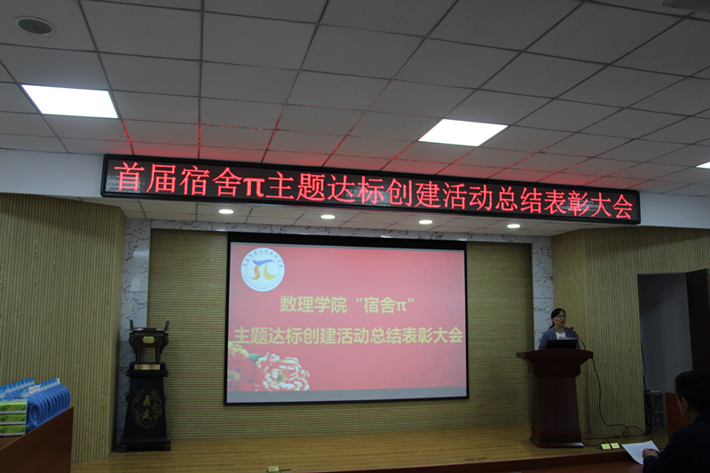 首届“宿舍π”主题创建达标活动总结表彰大会于数理楼大会议室召开,为历时近七个月的“宿舍派”主题创建达标活动画上完美的句号。院党总支副书记兼副院长王丽、分团委书记葛夫国、分团委老师刘祥鹏及100余名宿舍代表参加了会议。
