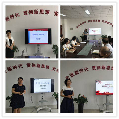 公共教学部副主任周淑娟老师的汇报题目是《为了信仰,上下求索》,周老师从虚心求教、课程的设置目的以及教师的角色定位三方面分享了自己从年轻教师成长起来的经历和感悟;“古有孔夫子,今有陶行知”,数学系教学骨干牟丽君老师以《育己育人,走向成熟》为主题,介绍了孔子和陶行知两位教学大师的教育思想。