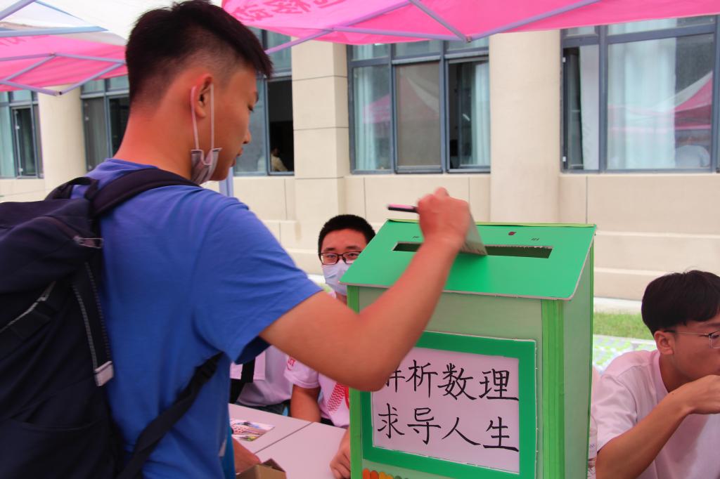 教师、学生、志愿者参与迎新,为解决新生入校时的相关问题。教师组成的“π”先锋服务车队帮助入校新生搬运行李,提前报道新生也加入到先锋岗的志愿者中。“π”——“优秀学子风采榜”、“考研风采榜”、“科创达人展示”等,带领新生领略数理优秀学子魅力,发挥榜样引领,为新生种下奋进的种子。