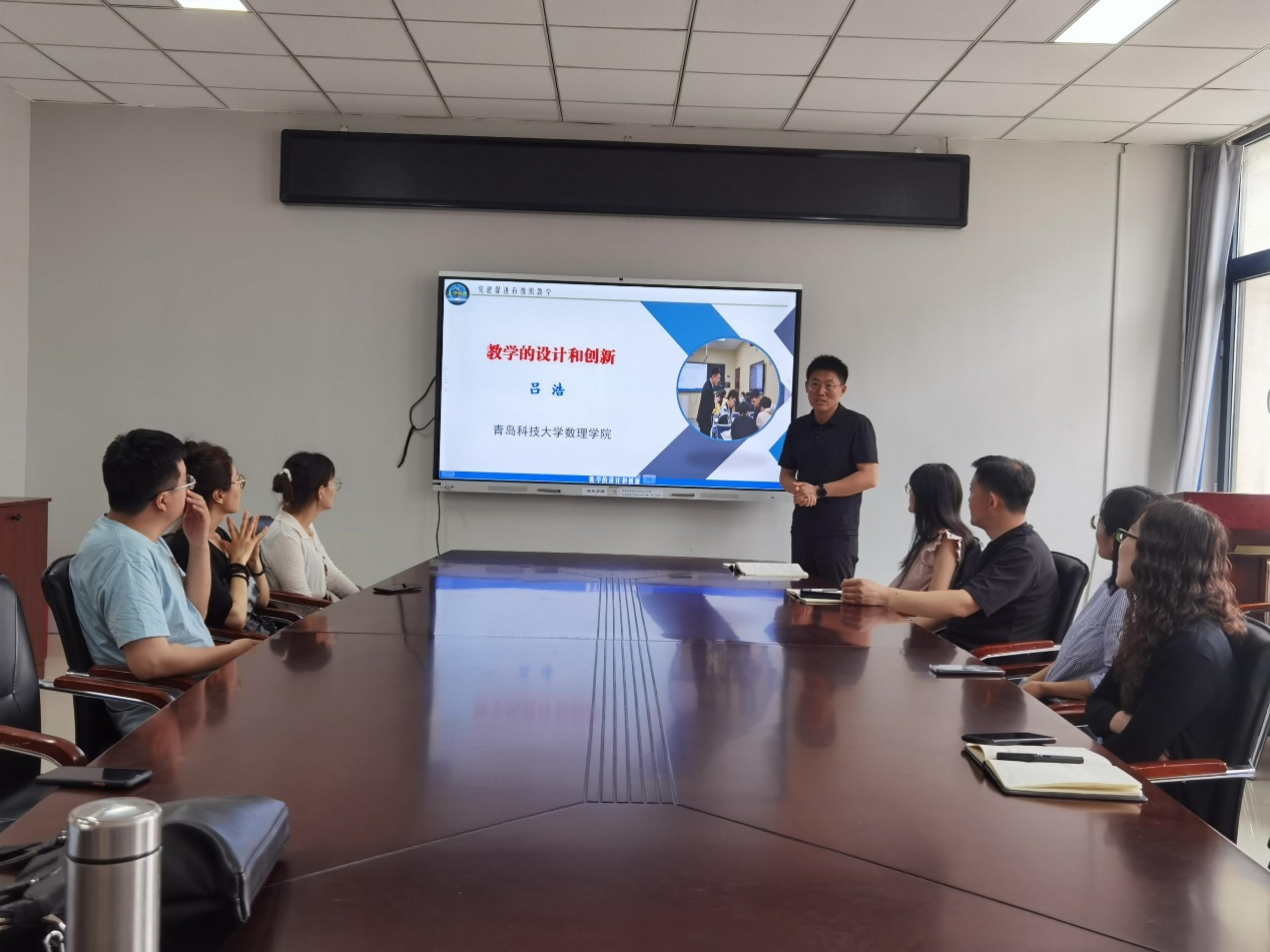 随后,省教师教学创新大赛一等奖获得者吕浩交流了参加教学比赛的心得和体会。结合教学实践和参赛经验,他从教学理念、教学内容、提炼总结、课程思政建设等多个方面,深入剖析了教学创新的内涵和路径。他建议,老师们要注重日常教学过程中的积累,才能逐步实现教学创新,提升教学质量。