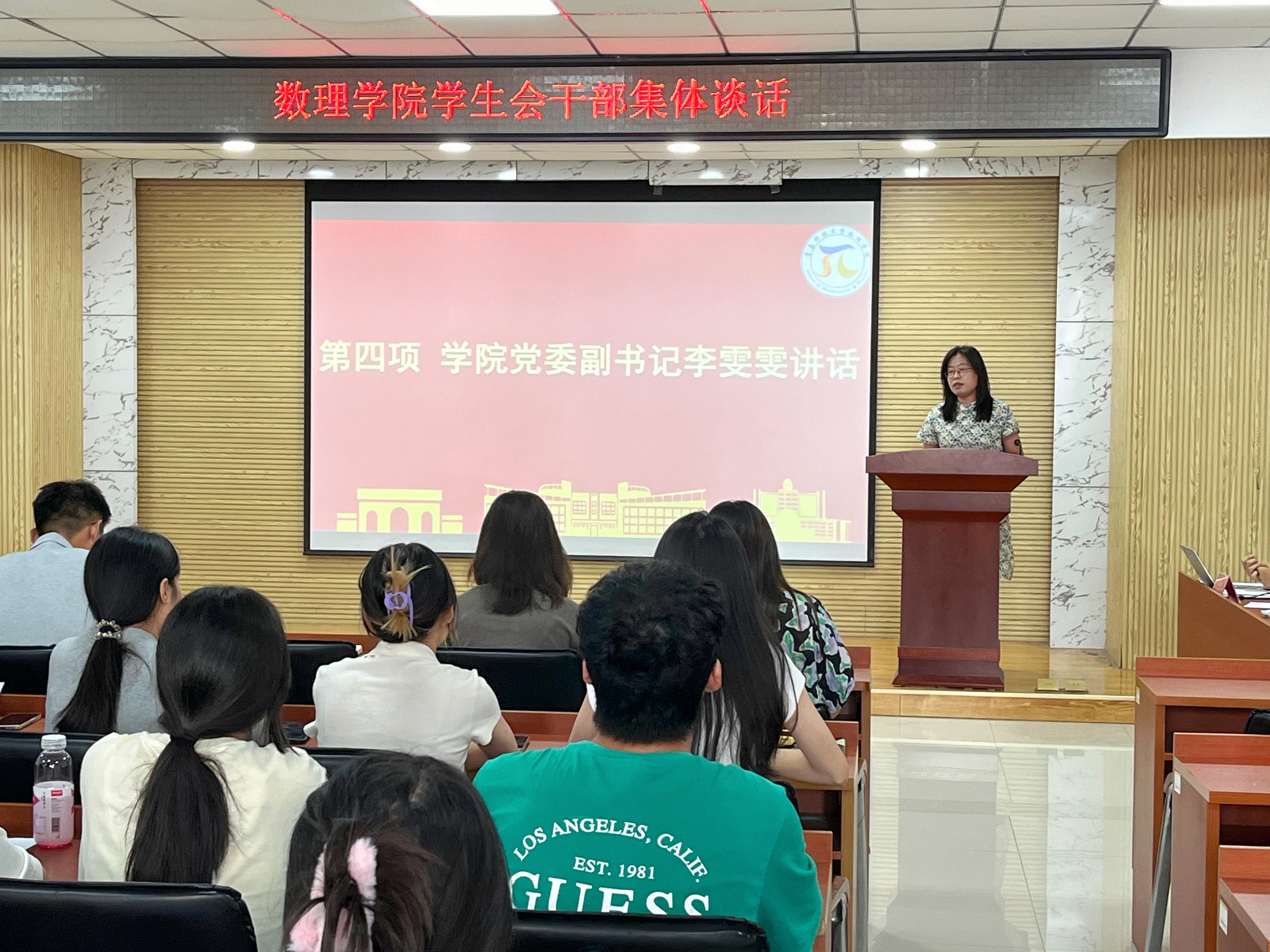 最后,李雯雯发表讲话。她首先对学生会上个学期的工作给予了充分肯定,对新学期的工作作出了详细指导,并对学生干部提出三点希望。第一,自律是基石。严于律己,自立自强,做好学生中的带头者、服务者、先行者。第二,初心是动力。团结一致,热爱工作,真正做到代表同学、服务同学。第三,创新是灵魂。坚持探索,敢闯敢拼,不断推动学生会工作迈上新台阶。