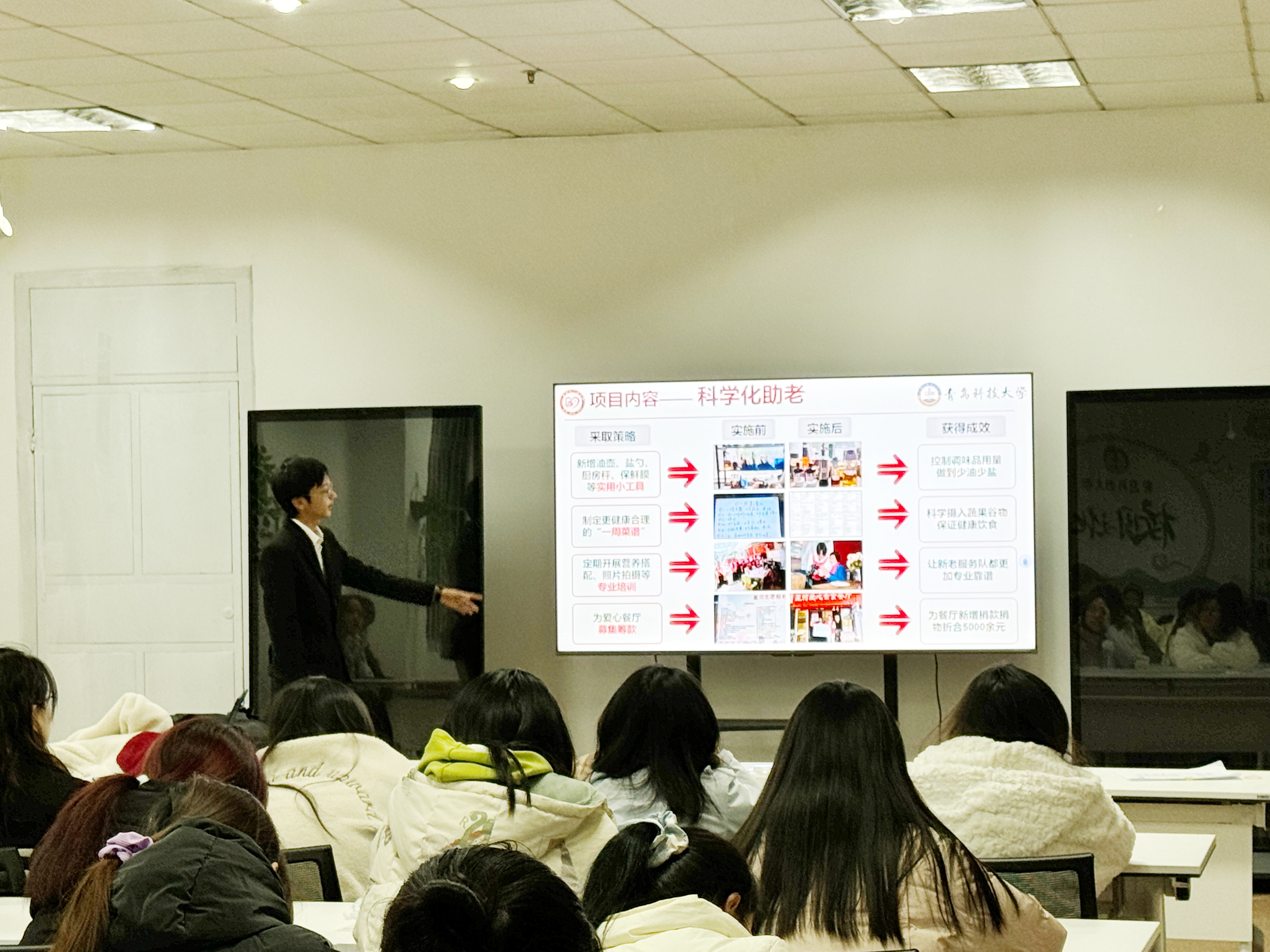 学生会心理工作负责人统计231张梓桐围绕朋辈心理辅导技巧与策略展开,通过案例分析、小组讨论等形式,帮助同学们掌握了有效的心理疏导方法和技巧,进一步提升了同学们的心理素质,增强了朋辈间相互沟通交流的能力。“雷锋式团支部”负责人应物232班孙焕溪为同学们讲述了团队成员走进社区爱心餐厅进行“轮值”,“接力式”开展送餐、拍照、反诈等助老服务的暖心故事。鼓励同学们积极投身志愿服务,进一步弘扬“奉献、友爱、互助、进步”的志愿服务精神,深刻体会帮助他人、奉献社会的乐趣。
