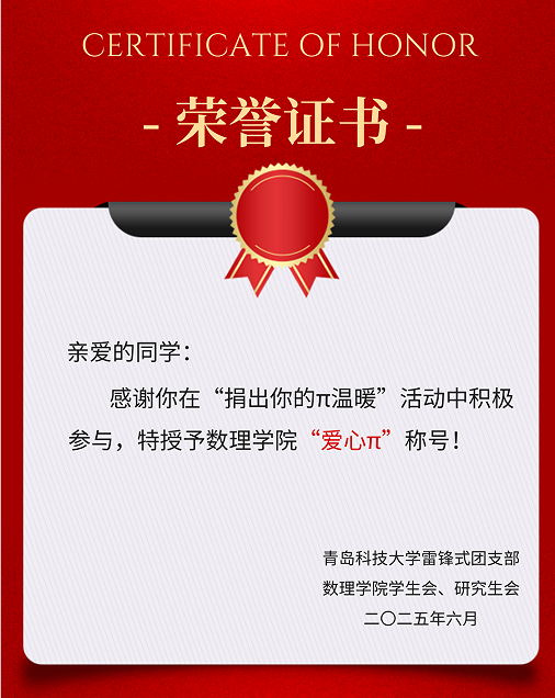 恭喜捐赠同学获得“爱心π”称号: