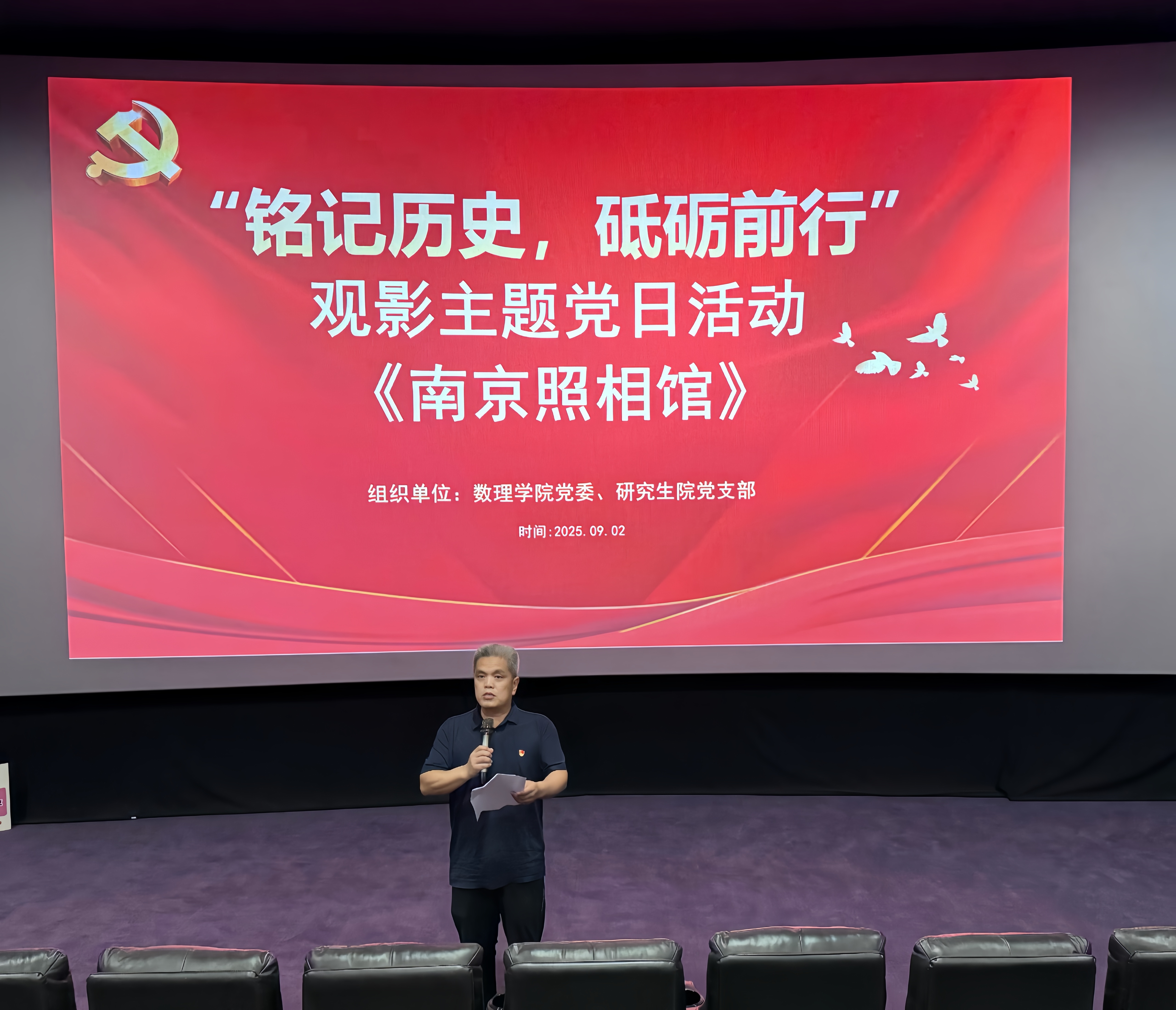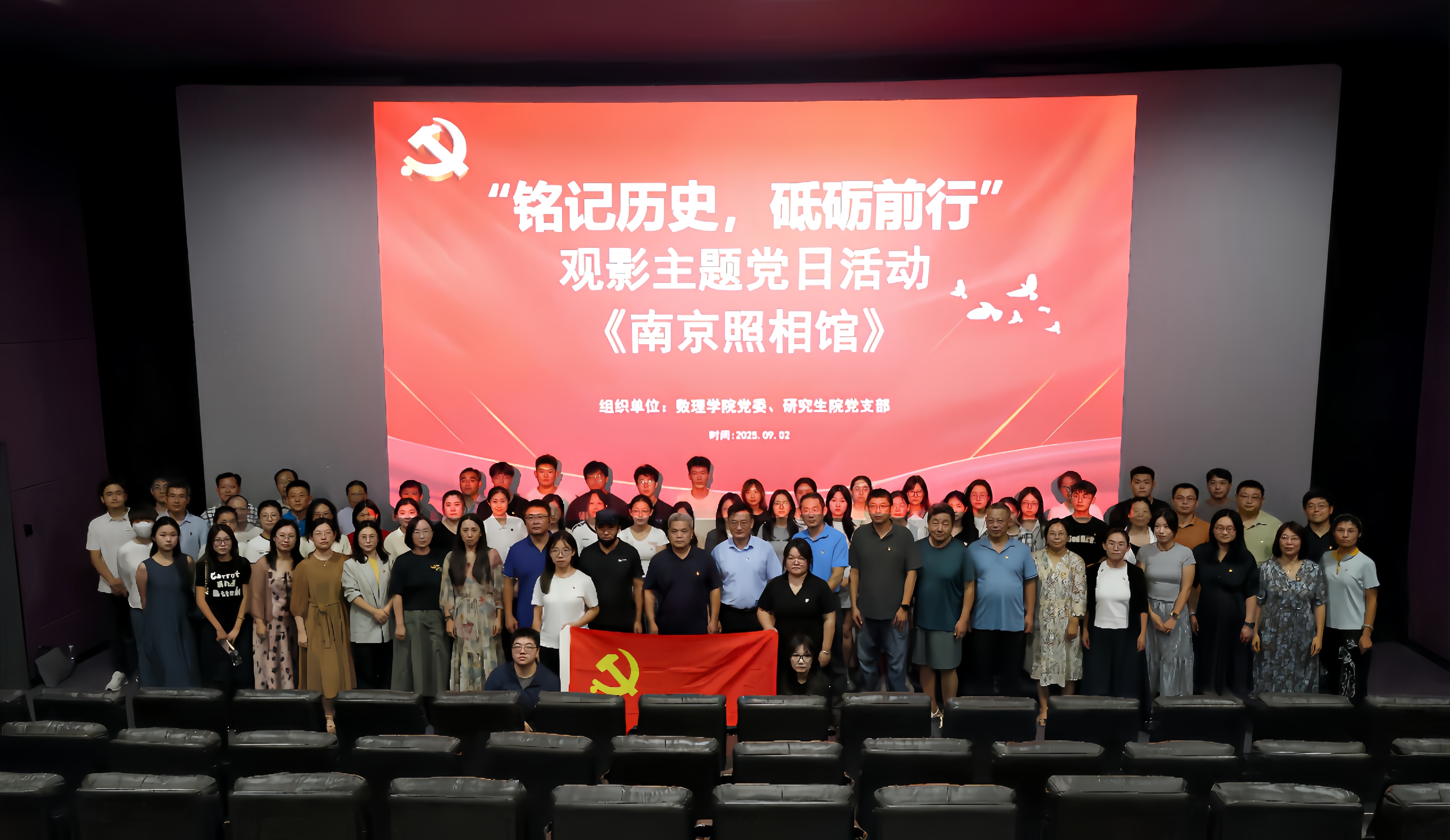 党委理论学习中心组全体成员及两单位党员师生共80余人集体观影《南京照相馆》,通过光影重温历史、汲取奋进力量。