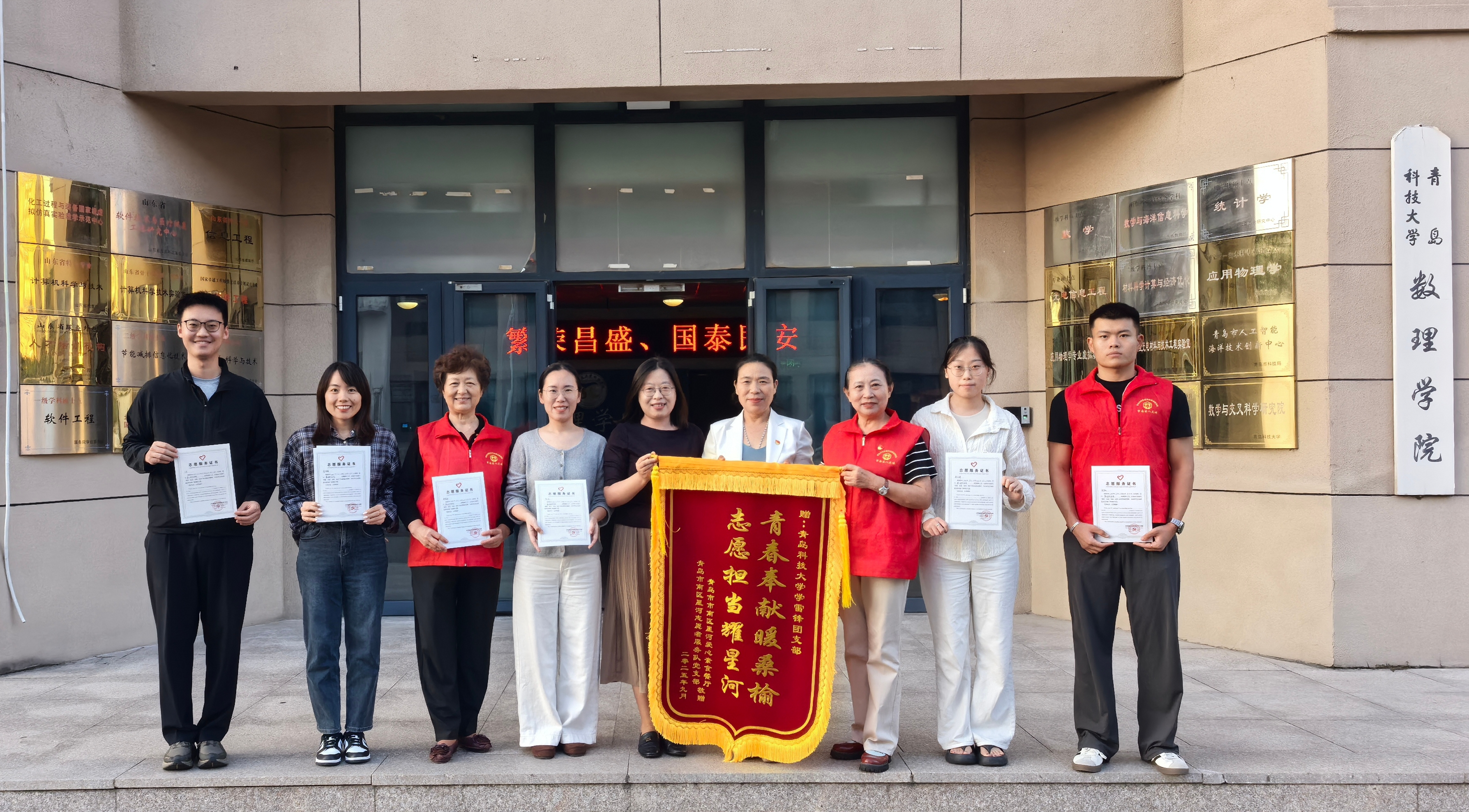以雷锋式团支部为代表的志愿者长期以来对爱心餐厅的倾力支持,星河志愿服务队特别赠送了印有“青春奉献暖桑榆,志愿担当耀星河”字样的锦旗及感谢信。信中特别提到,天博体育
