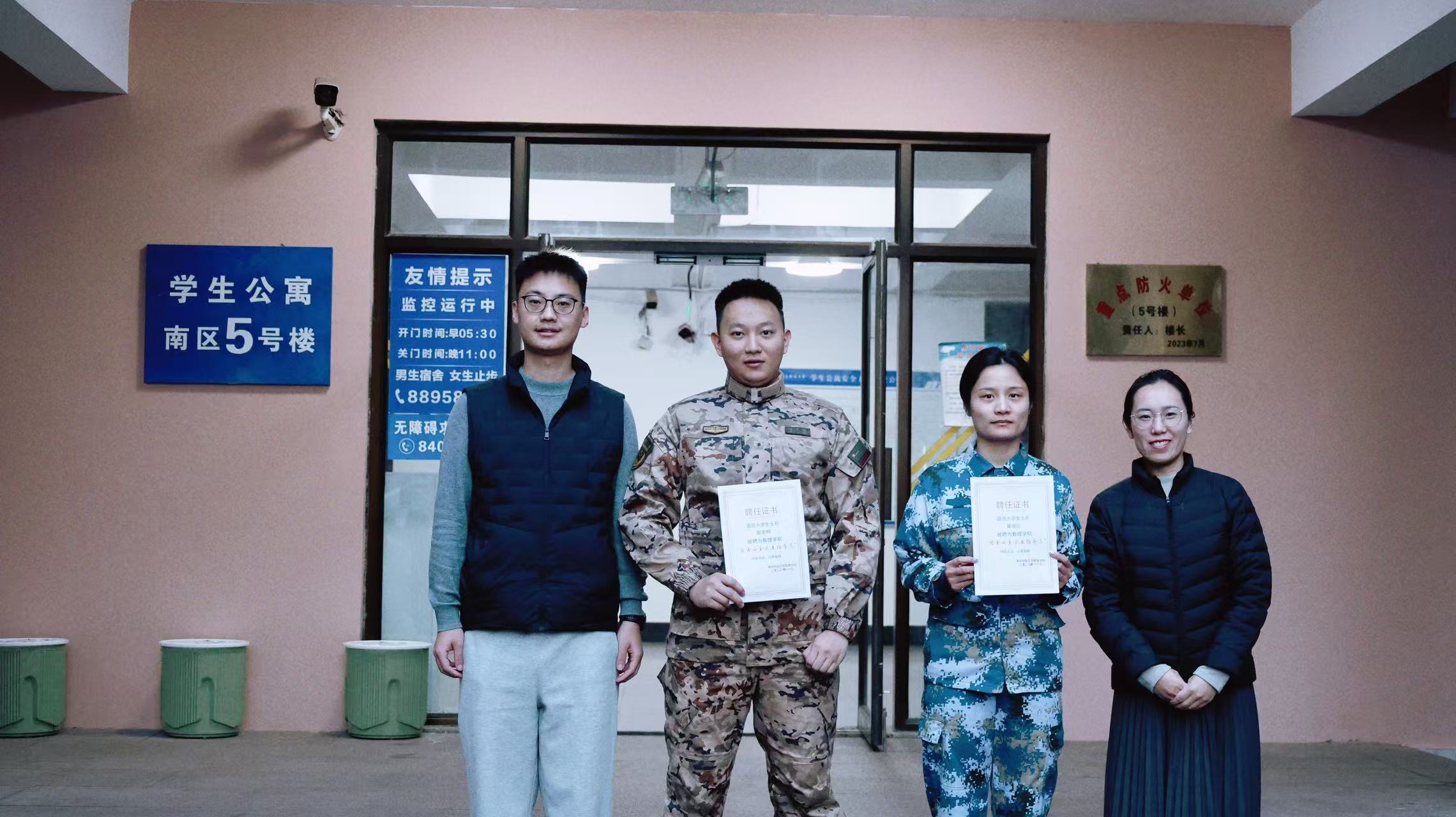 创新学生宿舍管理模式,充分发挥退役大学生士兵优势,正式聘任本科生赵家桐、研究生翟丽红两名同学担任天博体育