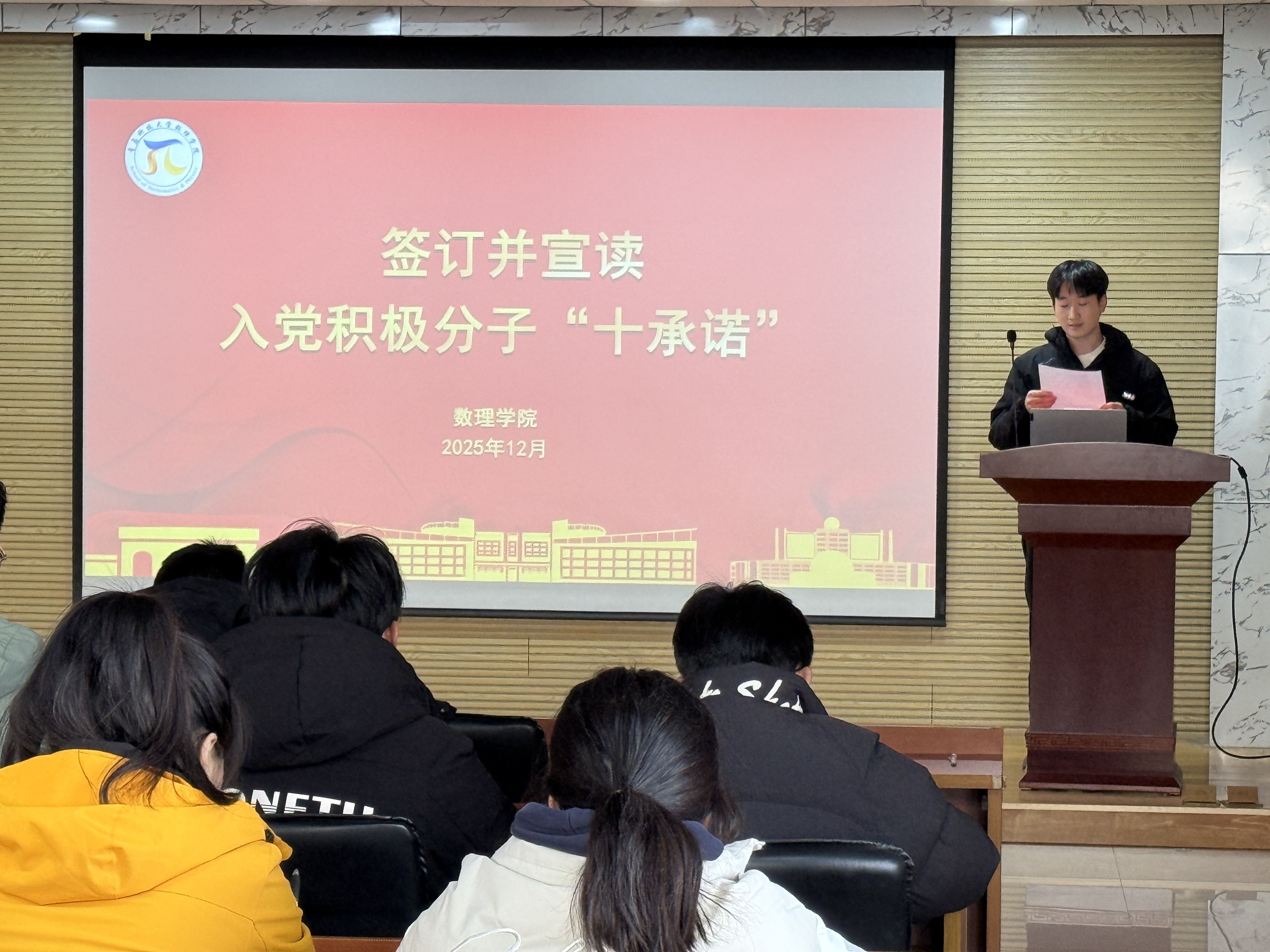 会上,党员代表应数221班张梦宣读并讲解《入党积极分子“十承诺”》,统计231班闫占博作为新确定入党积极分子代表进行现场表态。全年新确定69名入党积极分子现场签署承诺书。