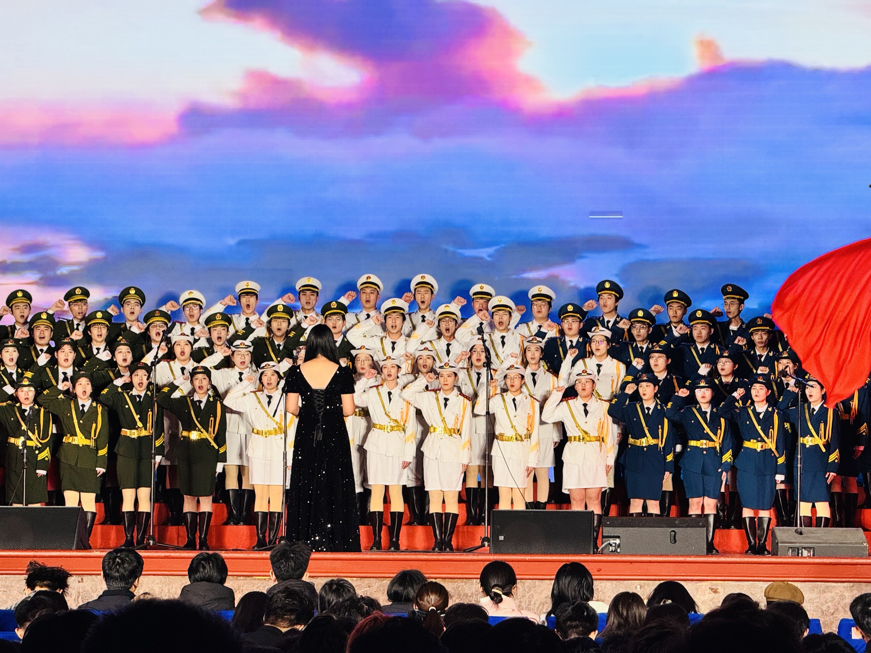 不同年级、不同专业的学生担任。演出中,全体成员身着军装,歌声嘹亮,准确诠释了歌曲中所蕴含的奉献精神与时代内涵。