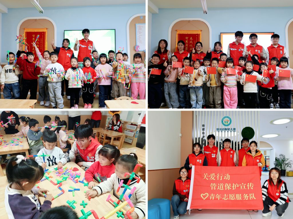 “童心护管·科技筑梦”志愿宣讲团走进青岛市西海岸新区阳光启智幼儿园,开展“少年儿童安全守护计划”管道保护宣传志愿服务。