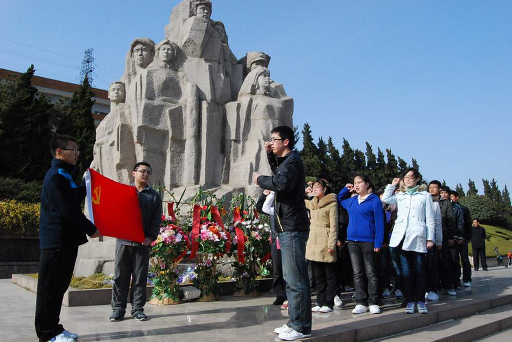 师生一行20多人,高举党旗,来到青岛市革命烈士纪念馆,在纪念馆工作人员的引领下,有序地参观了烈士纪念堂和烈士事迹陈列馆,并认真倾听了讲解员的介绍。大家面对着革命先烈,无不充满了敬意,感受到今天的幸福生活来之不易。最后,大家在烈士群雕“山河魂”下,向革命先烈鞠躬致敬,高声宣读了党的誓词,使学生们在内心深处受到了一次震撼而深刻的教育。