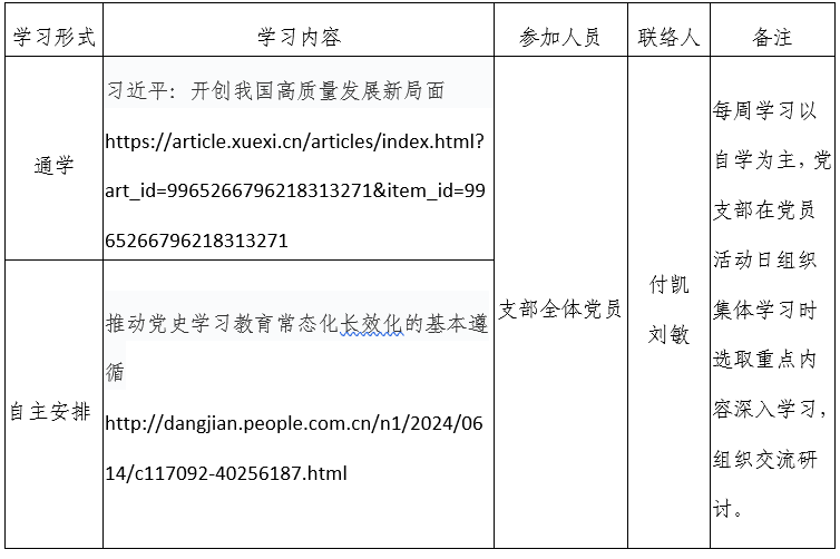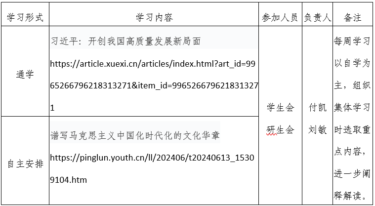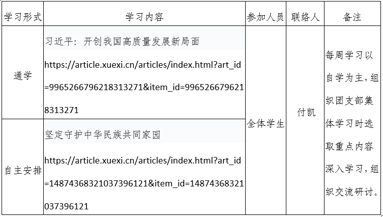 2024年春季学期第16周天博体育 团支部学习安排