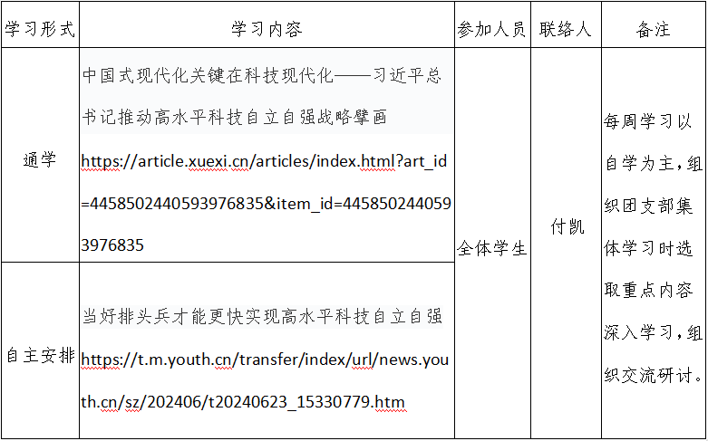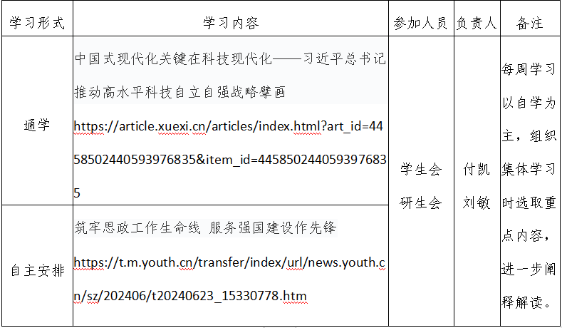 2024年春季学期第17周天博体育 团支部学习安排