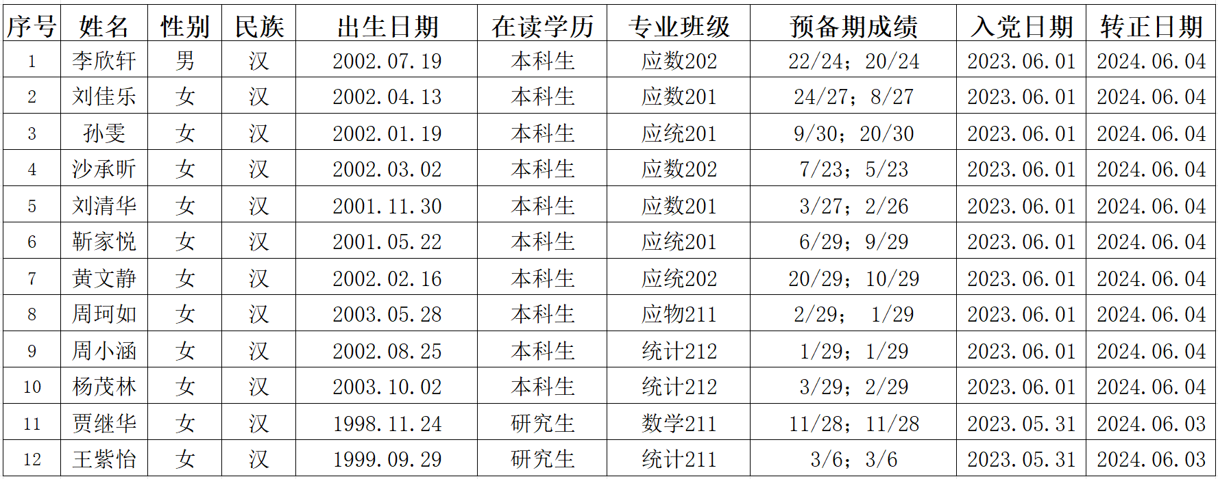 经天博体育 学生党支部、研究生党支部研究讨论,天博体育 党委审核,拟将李欣轩等12位同志转为中共正式党员,现将其有关情况予以公示。