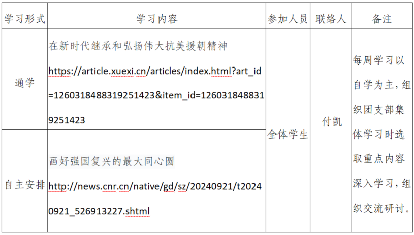 2024年秋季学期第4周天博体育 团支部学习安排