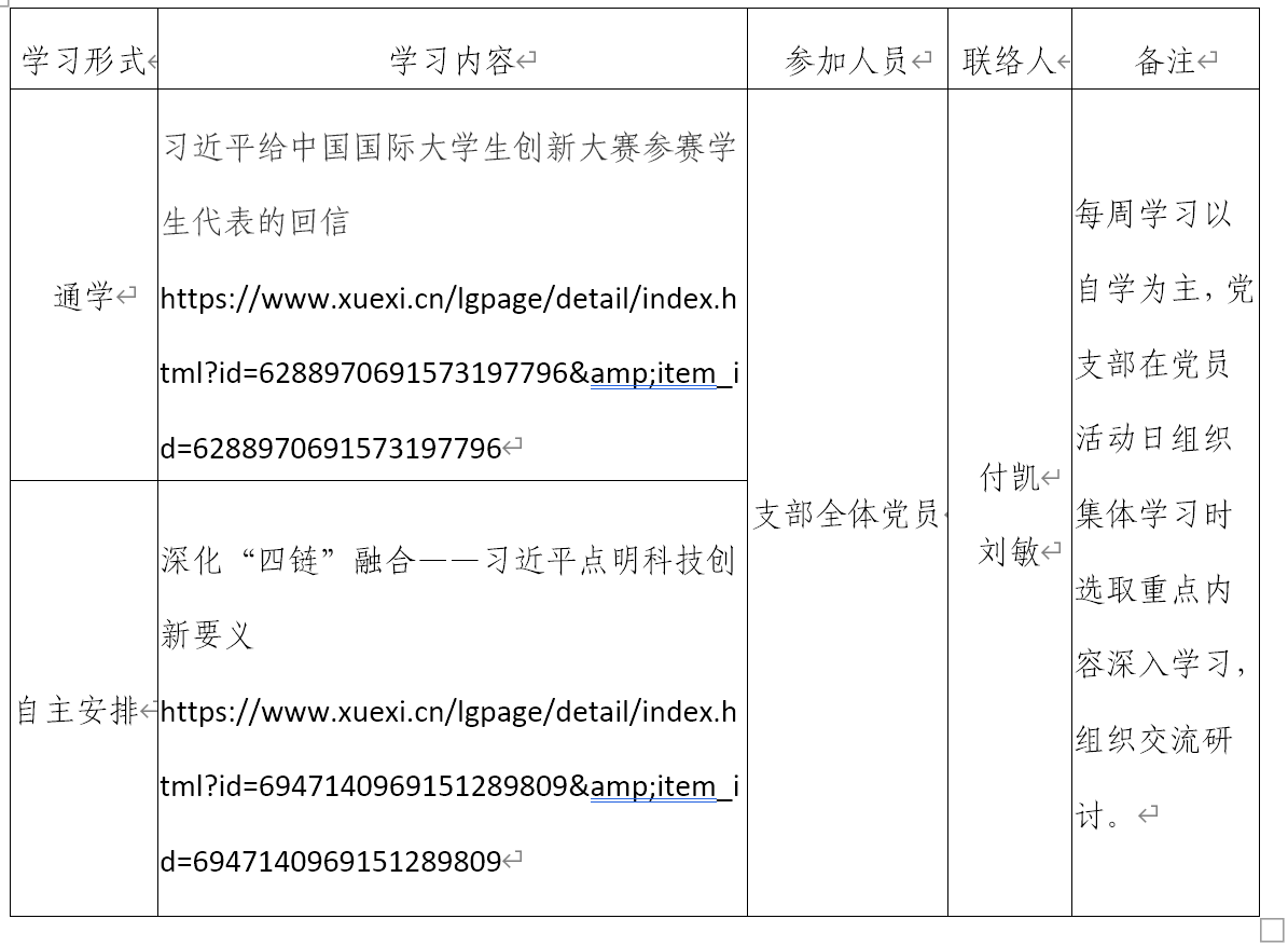 2024年秋季学期第10周天博体育 本科生党支部、研究生党支部学习安排