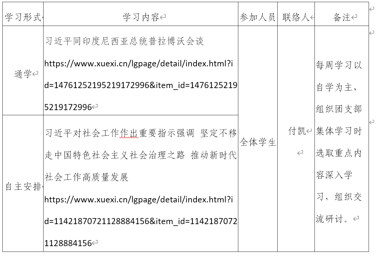 2024年秋季学期第11周天博体育 团支部学习安排