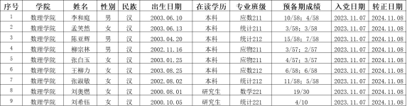 根据本人申请、党组织考察,经天博体育 学生党支部研究,拟将李和庭等9位同志转为中共正式党员,公示期为2024年11月8日-11月15日,如有异议,请实名向天博体育 反映。 地点:D2楼天博体育 201办公室 电话:0532-88958935