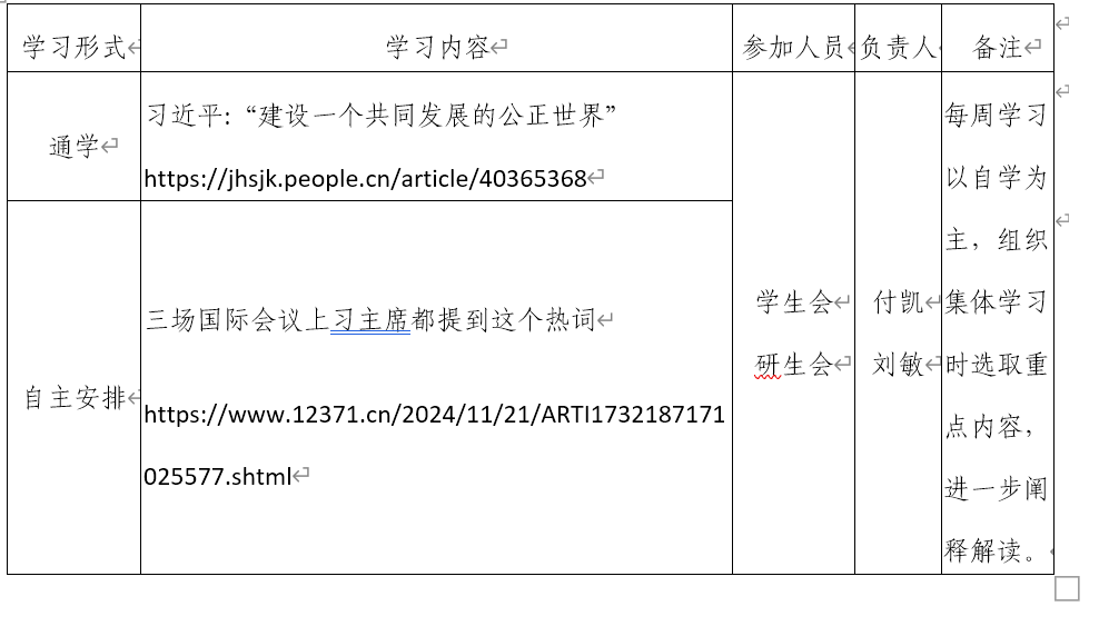 2024年秋季学期第13周天博体育 学生组织学习安排
