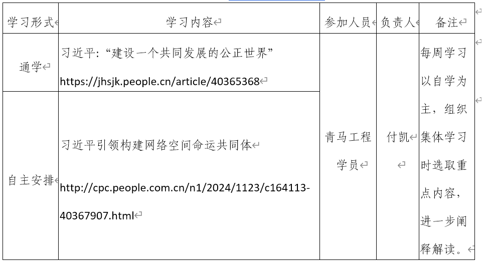 2024年秋季学期第13周天博体育 青马工程学习安排