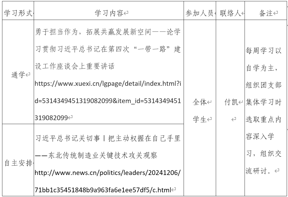 2024年秋季学期第15周天博体育 学生组织学习安排