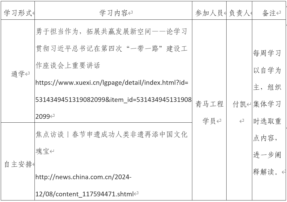 2024年秋季学期第15周天博体育 青马工程学习安排