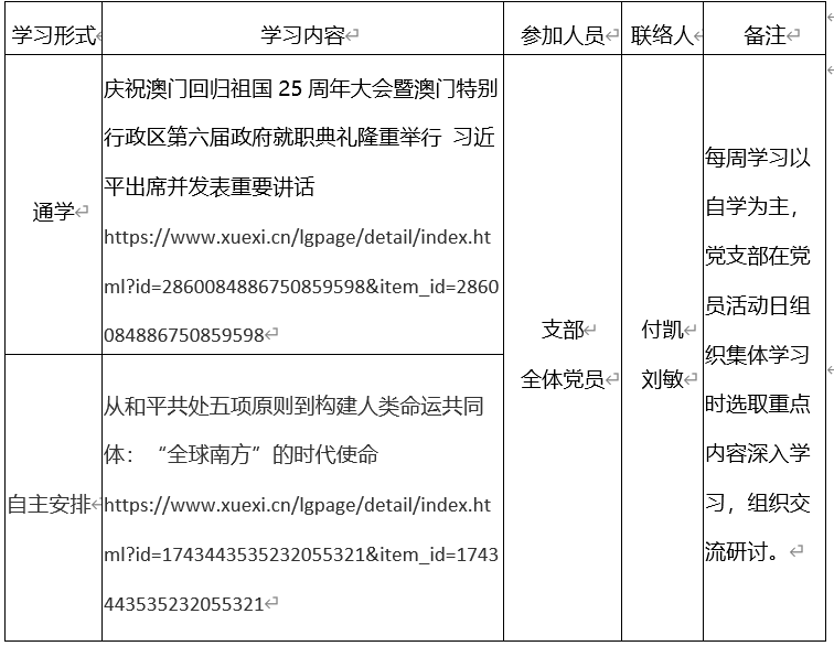 2024年秋季学期第17周天博体育 本科生党支部、研究生党支部学习安排