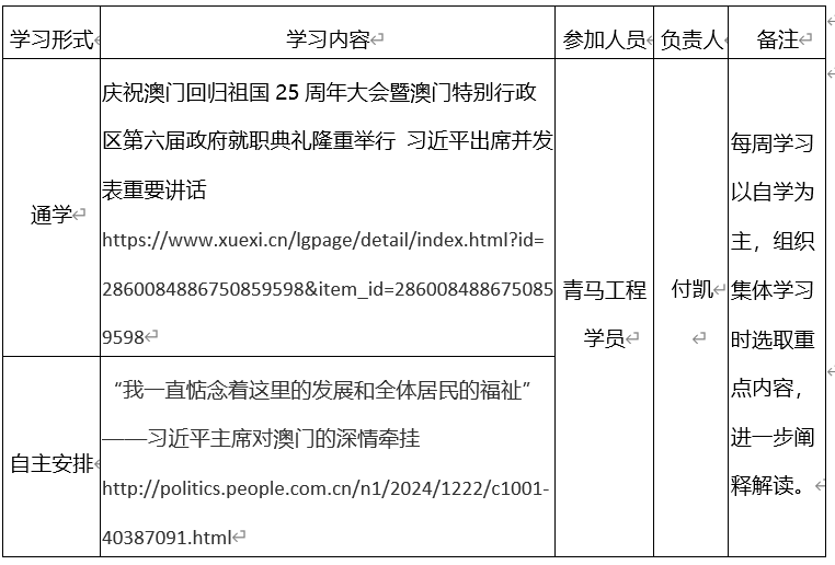 2024年秋季学期第17周天博体育 青马工程学习安排