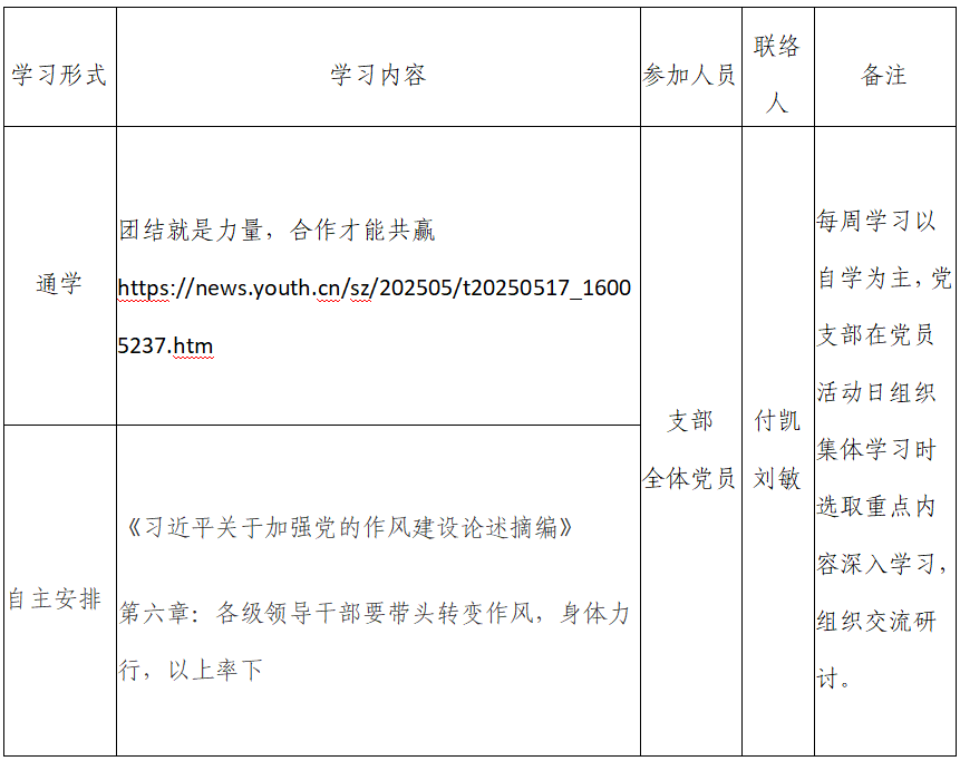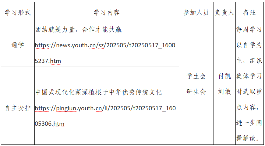 2025年春季学期第12周天博体育 本科生党支部、研究生党支部学习安排