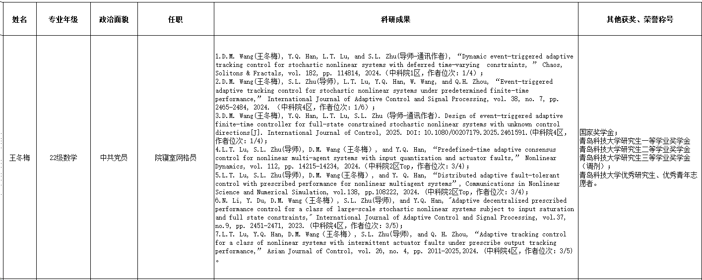 根据《关于开展天博体育 第十七届研究生“学术之星”评选活动的通知》要求,经学生申请、材料审核及天博体育 研究生“学术之星”评审委员会审议讨论,天博体育 拟推荐人选为王冬梅,具体情况如下: