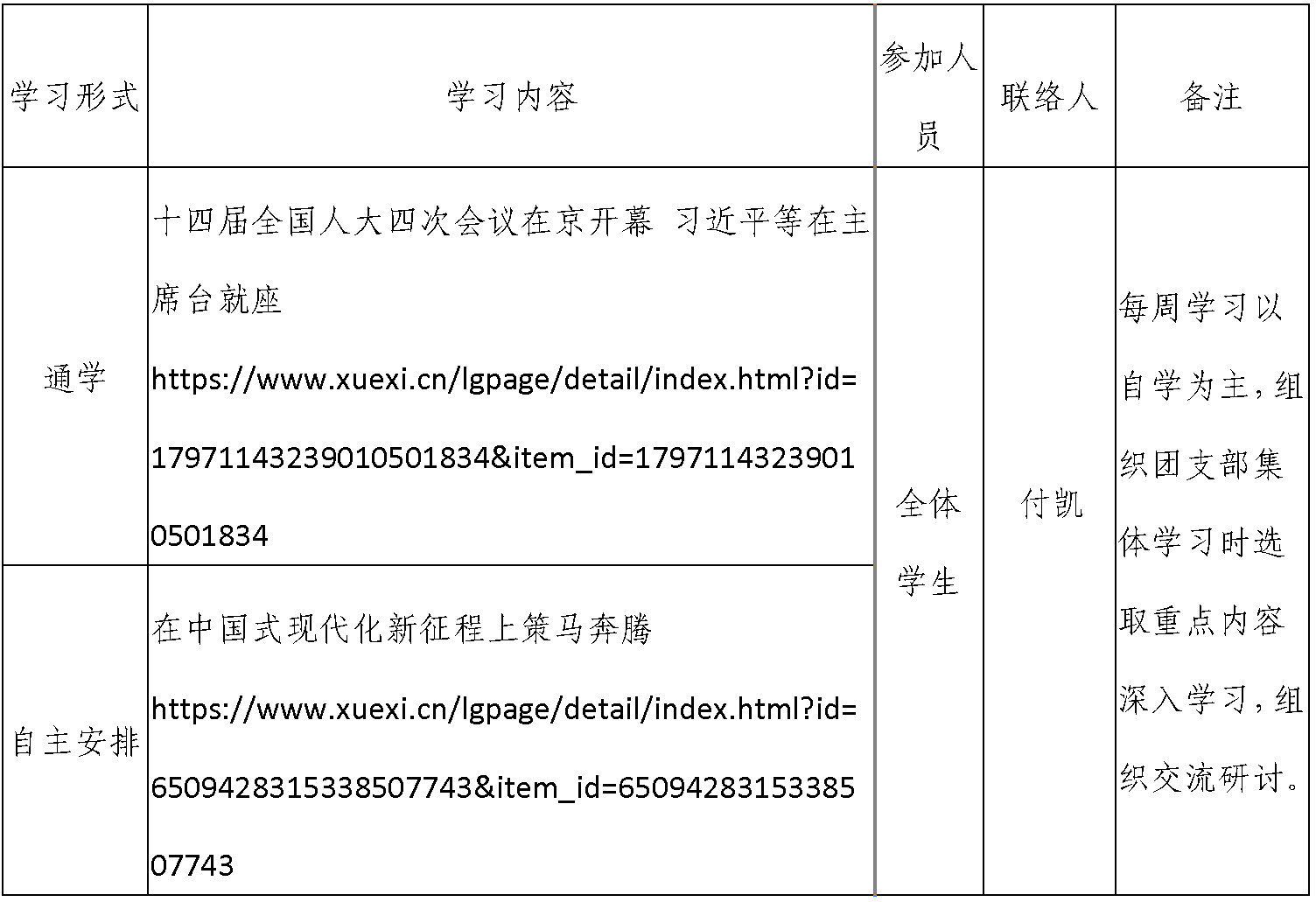 2026年春季学期第1周天博体育 团支部学习安排