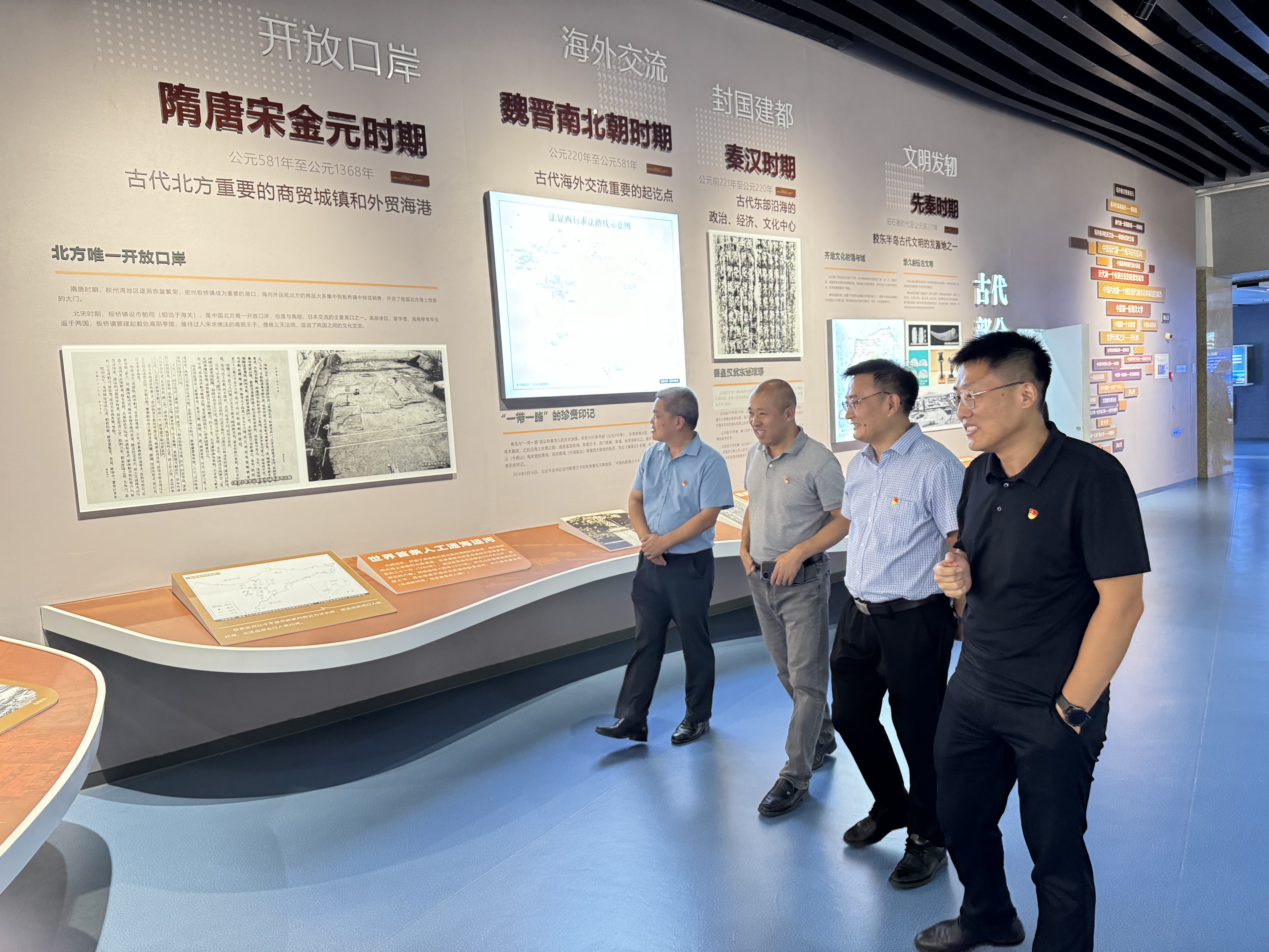在城市规划展览馆,党员老师通过沙盘模型、智慧城市体验、4D电影等方式,从平面到立体,从过去到未来,全方位了解青岛市历史规划和城建变迁的辉煌历程,感受科技赋能海洋城市发展现状和未来,触摸城市更新和城市建设的蓬勃脉动。在参观学习中加深了对城市建设、城市规划、特色产业、未来发展等方面的脉络和动向,了解城市发展的主旋律、方向标和发力点,以此发挥高校科研核心作用,融入城市发展、助推校地融合。
