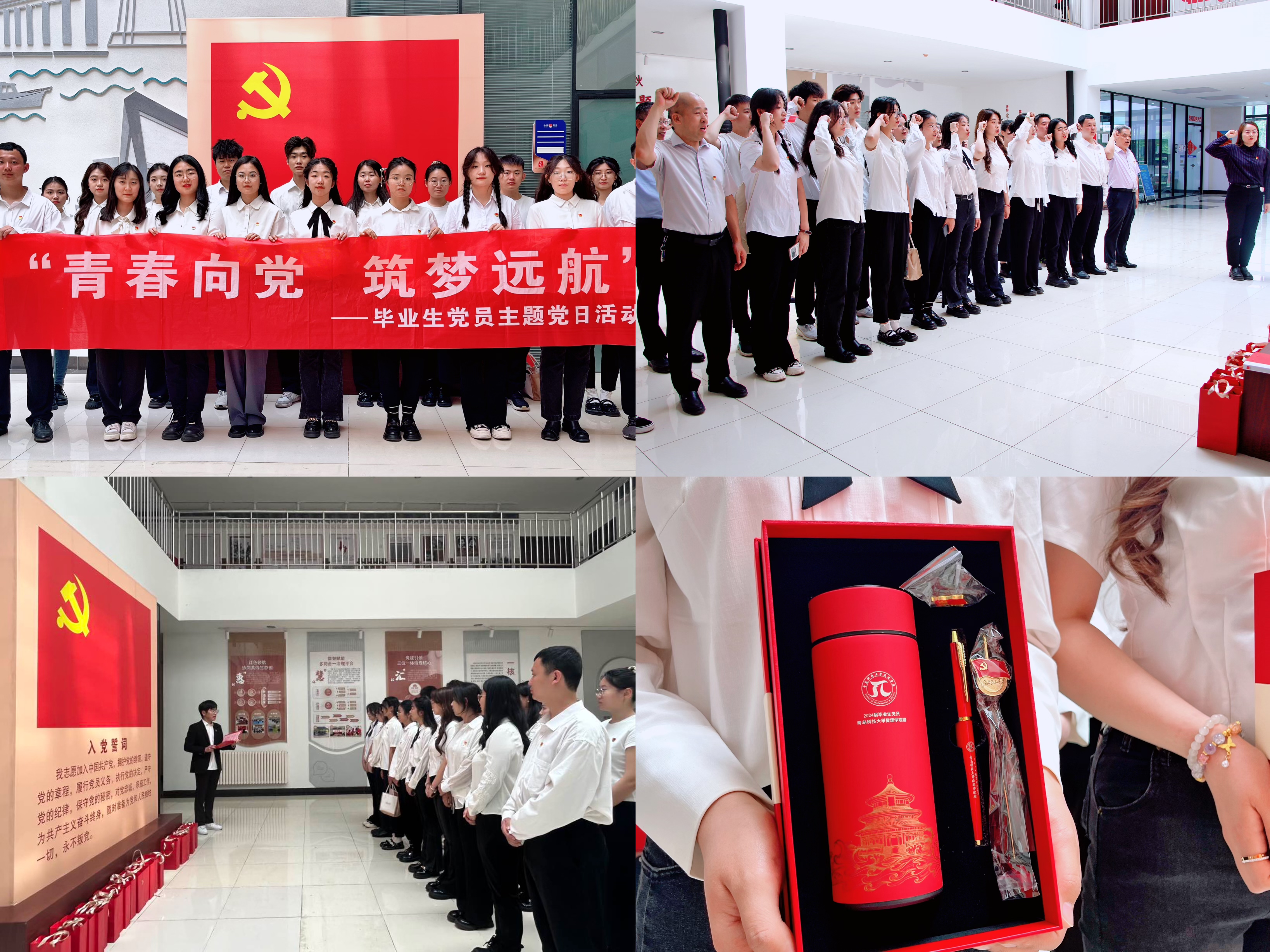 为每一位毕业生定制π系文化衫,八个主题蓄满青春能量;打造打卡景点“青春π向未来”网红墙,用创意为青春送行;定制水杯、崭新党徽,给毕业生党员送上“信仰大礼包”;举办专题交流会、开设朋π小讲堂,毕业生为学弟学妹送经验、送心得;毕业生录制对母校的深情告白与温暖祝福,生成二维码制作彩色喷绘、水晶座台,让“感恩母校”变得有声有色。