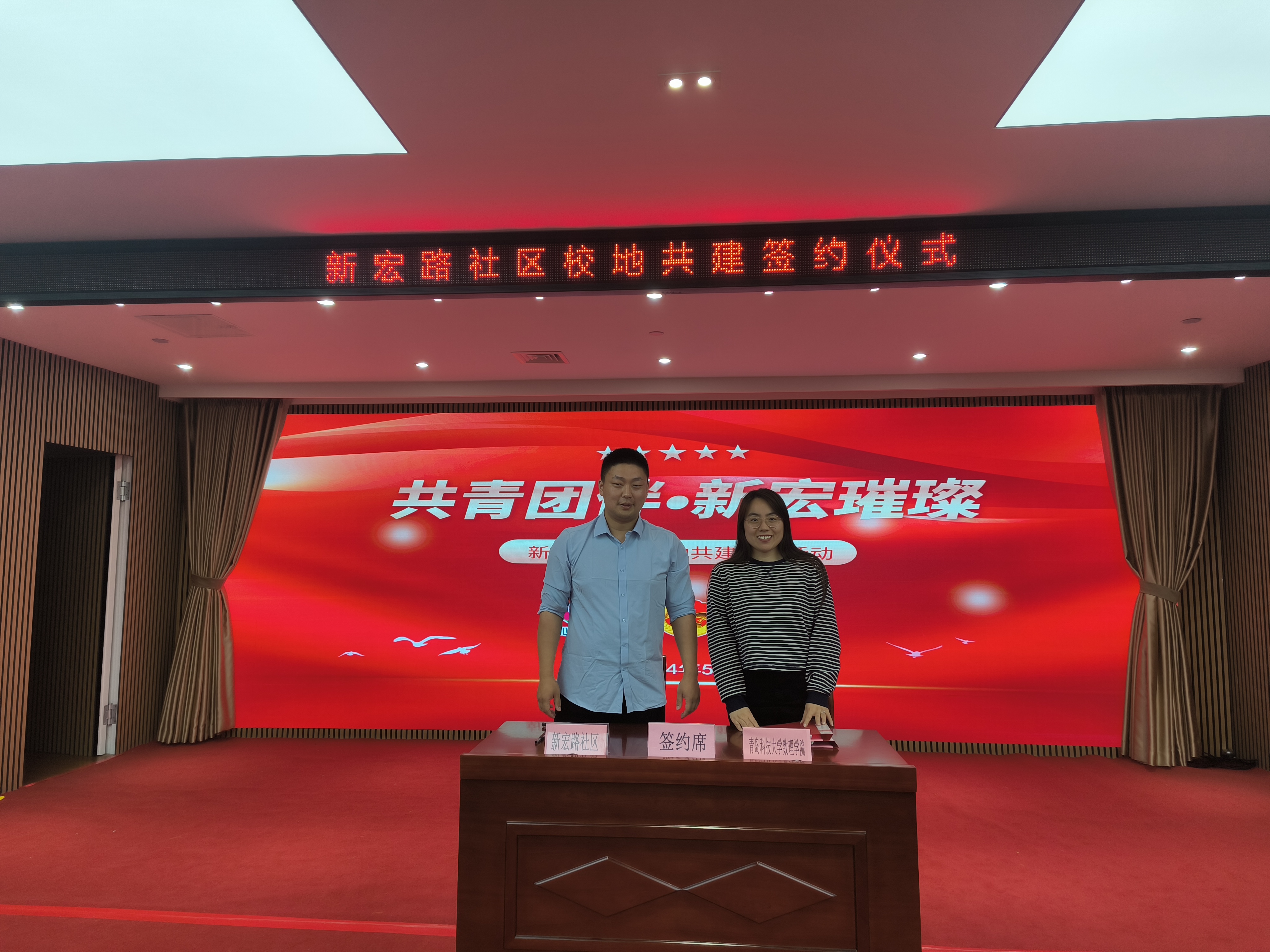 在“共青团伴,新宏璀璨”校地共建签约仪活动上,新宏路社区党委书记刘宇介绍了社区基本情况。付凯对天博体育