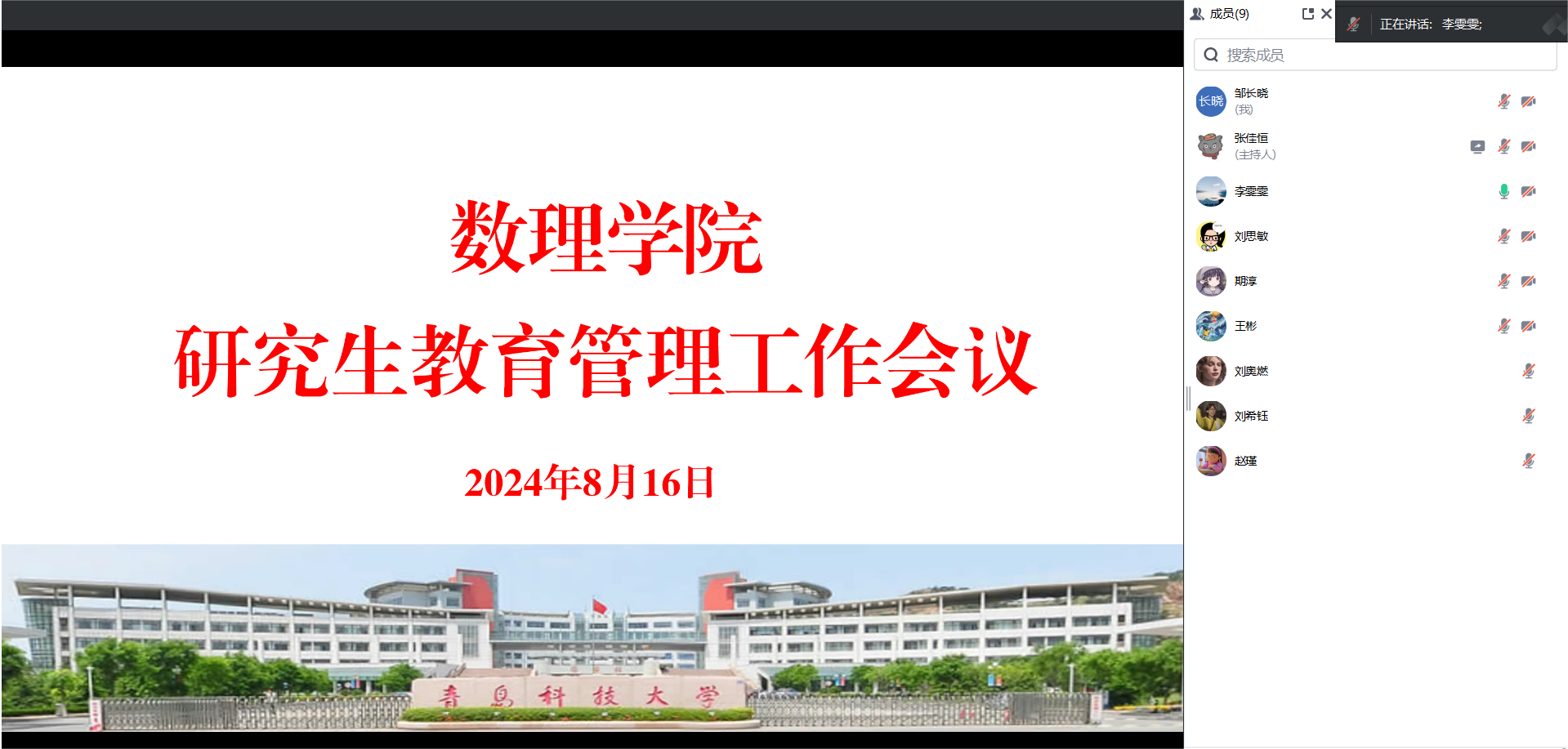党委副书记兼副院长李雯雯,研究生各班班长及团支书参加会议。
