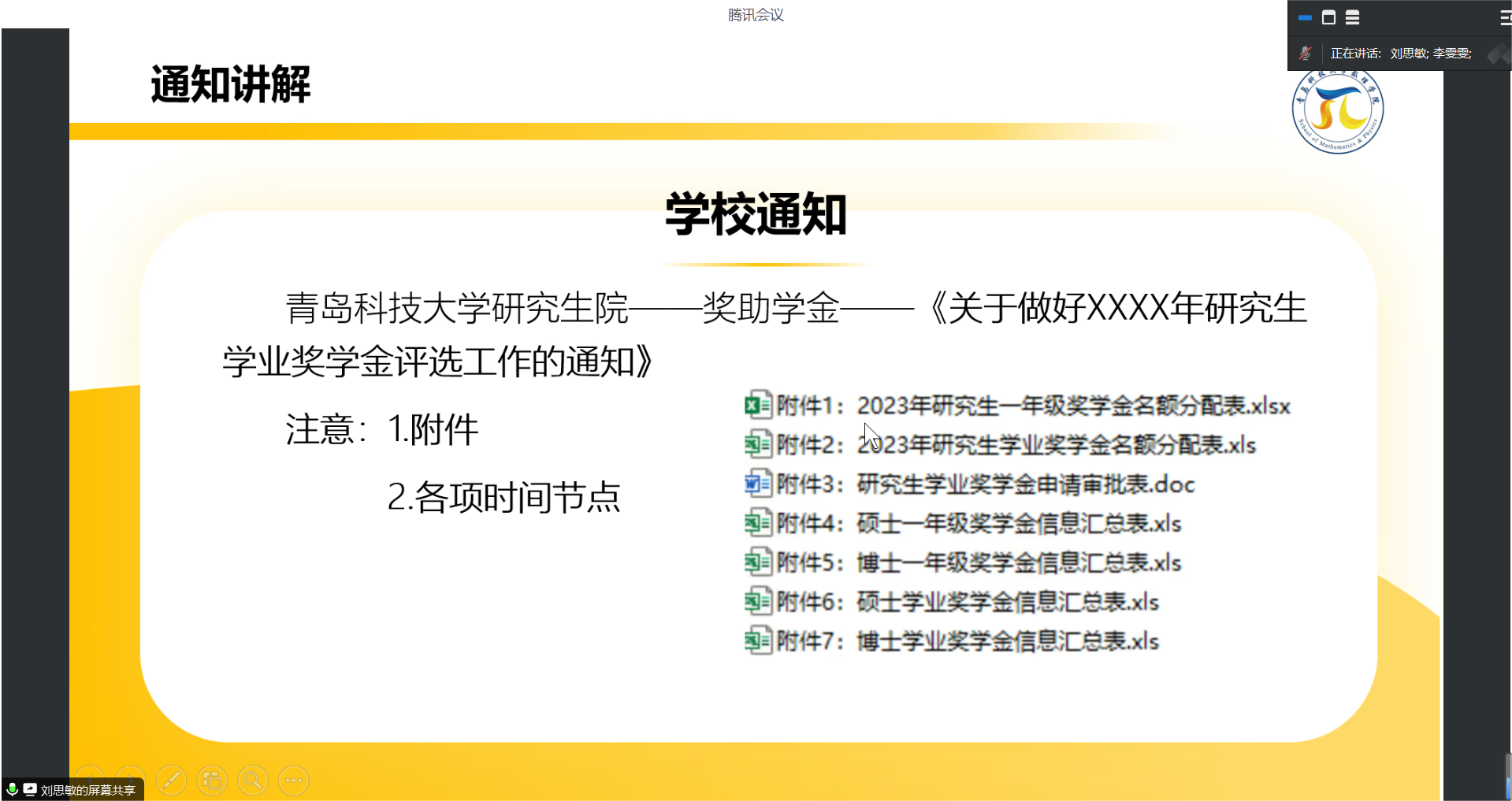 会议第二阶段集中组织开展了研究生奖学金评审工作主题培训,解读了奖学金评审文件、评审流程,21级研究生班级团支书刘思敏进行了经验分享,与会人员围绕评审工作中可能遇到的问题进行了交流探讨。
