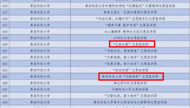 近日,团中央青年志愿者行动指导中心、共青团山东省委、中共临沂市委联合开展的2024年全国大学生沂蒙精神志愿宣讲活动公布了入选团队名单,天博体育 “红韵沂蒙”和“沂脉相承”两个志愿宣讲团成功入选。