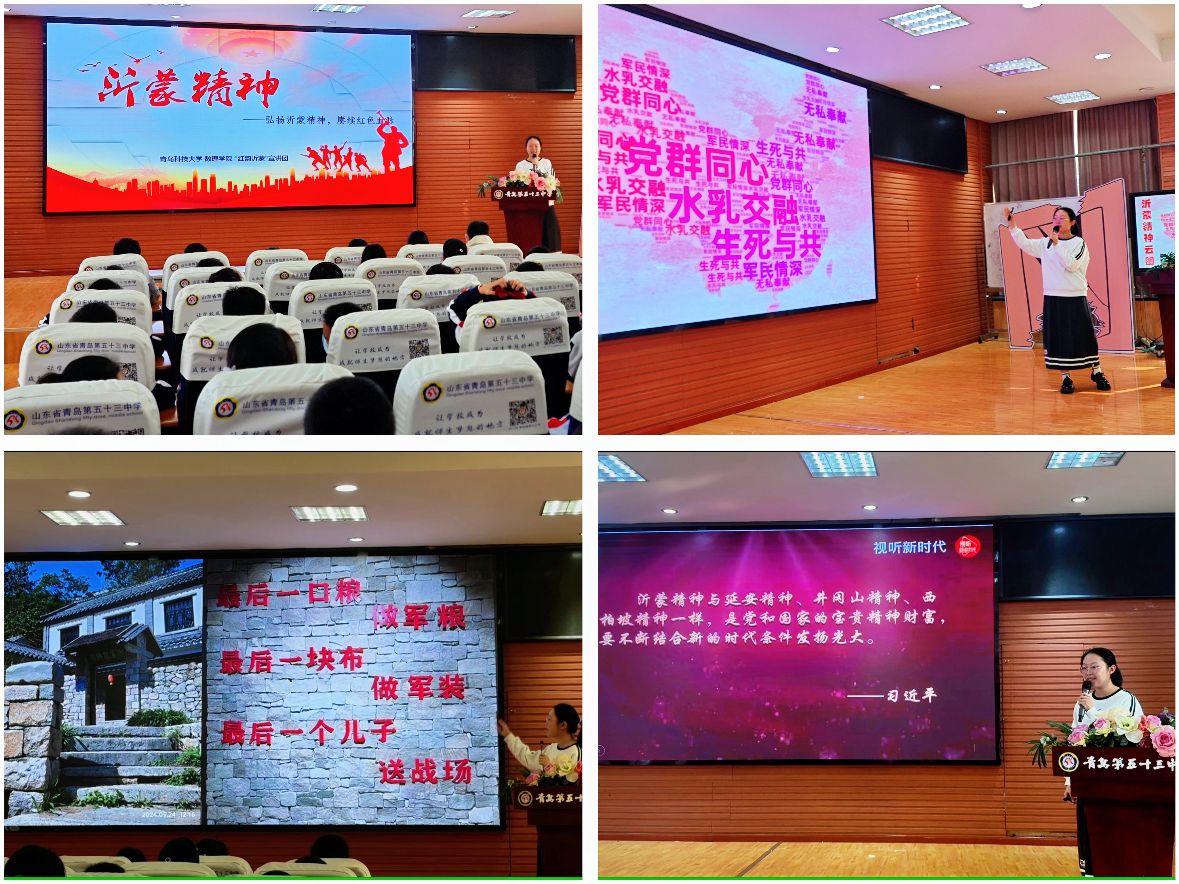 应用统计学专业241班“红韵沂蒙”志愿服务队走进青岛五十三中学开展沂蒙精神专题宣讲活动,与80多位小学生同上一堂红色思政课。